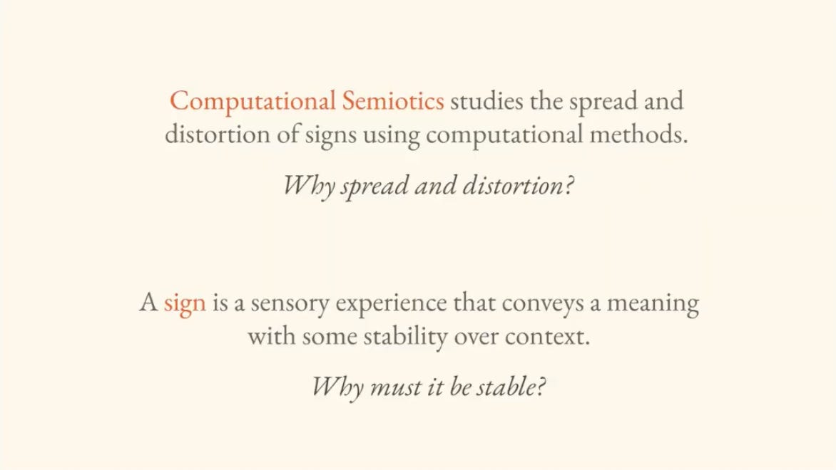 I’m interested in computational semiotics because we are in the middle of a major shift in how we use language at scale, and we have access to more information about human cultural circuitry than ever.