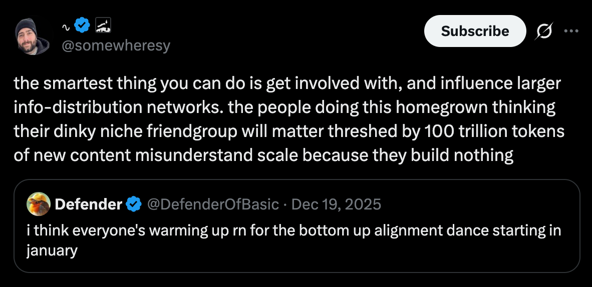 So I’ll close by highlighting the opportunity: we solo artists/creators/builders could form communities of critique around techniques like this, where we provide mutual benefit by participating in e.g. premortems for each others’ projects.