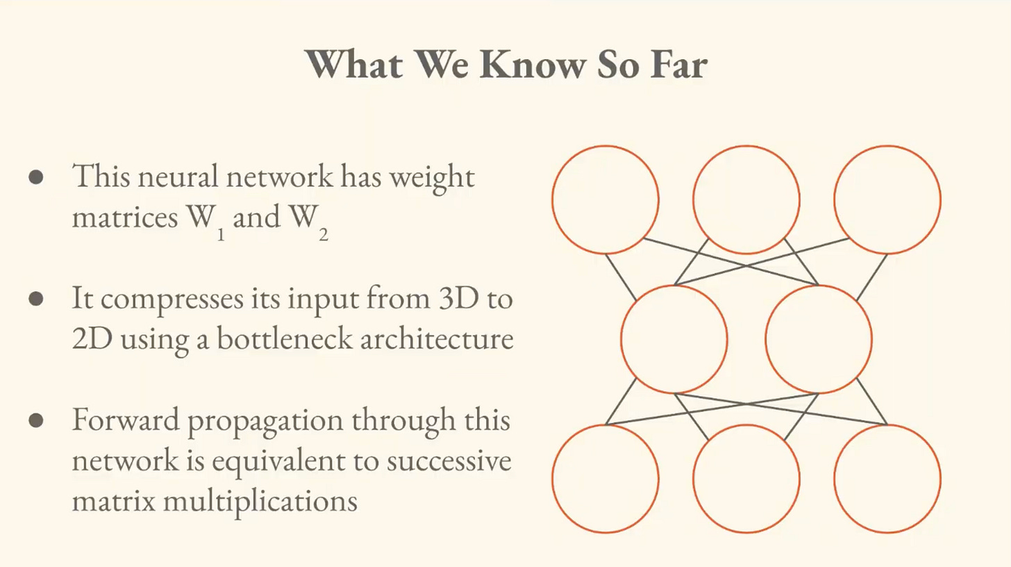 As a reminder, the neural network we’ve been looking at throughout this lecture is a linear autoencoder.