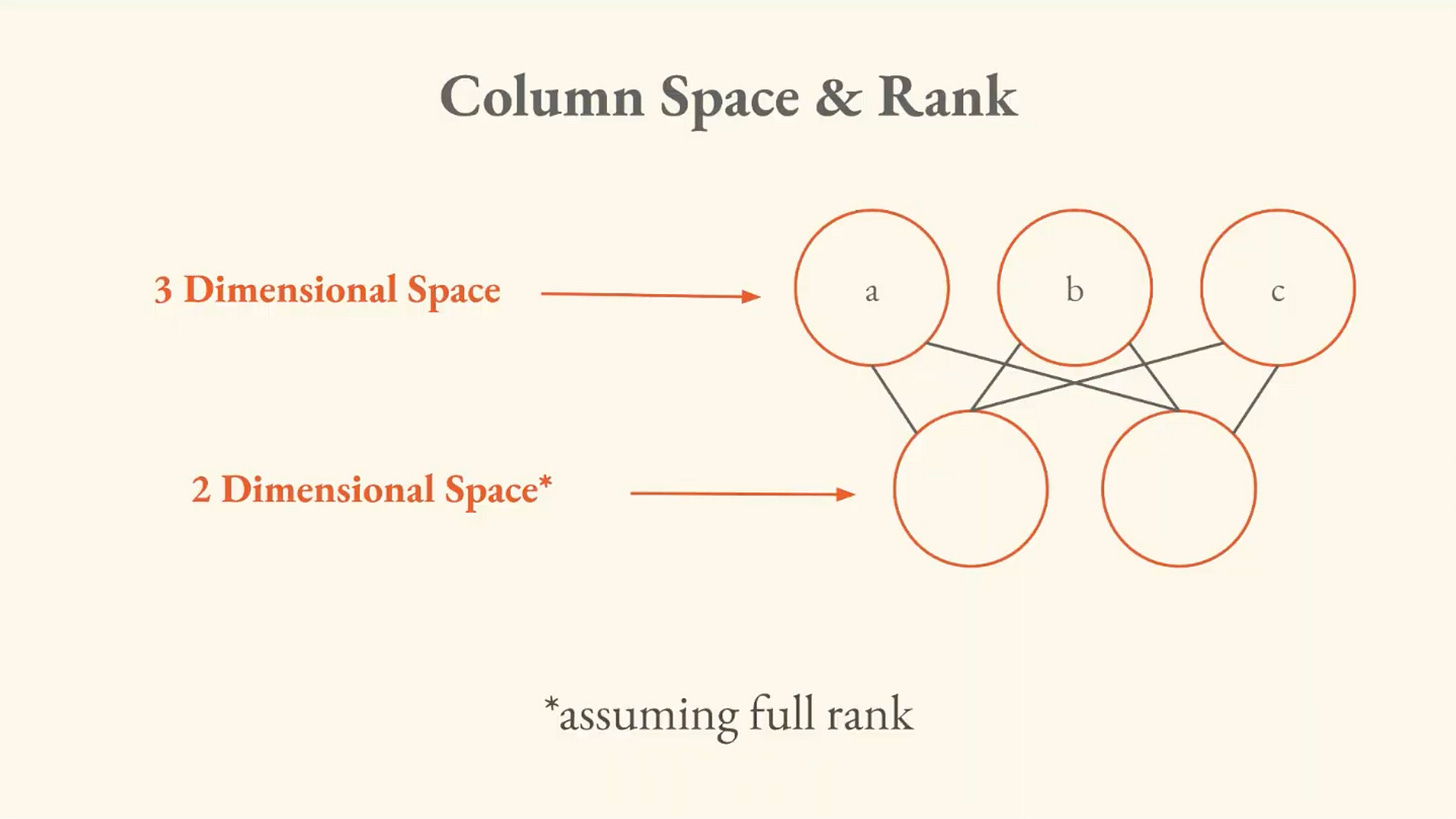 The column space tells you what outputs are possible given the network’s structure. The rank tells you the dimensions of those outputs. If you push 3D data through a 2D bottleneck, the rank is at most 2, because information gets compressed.