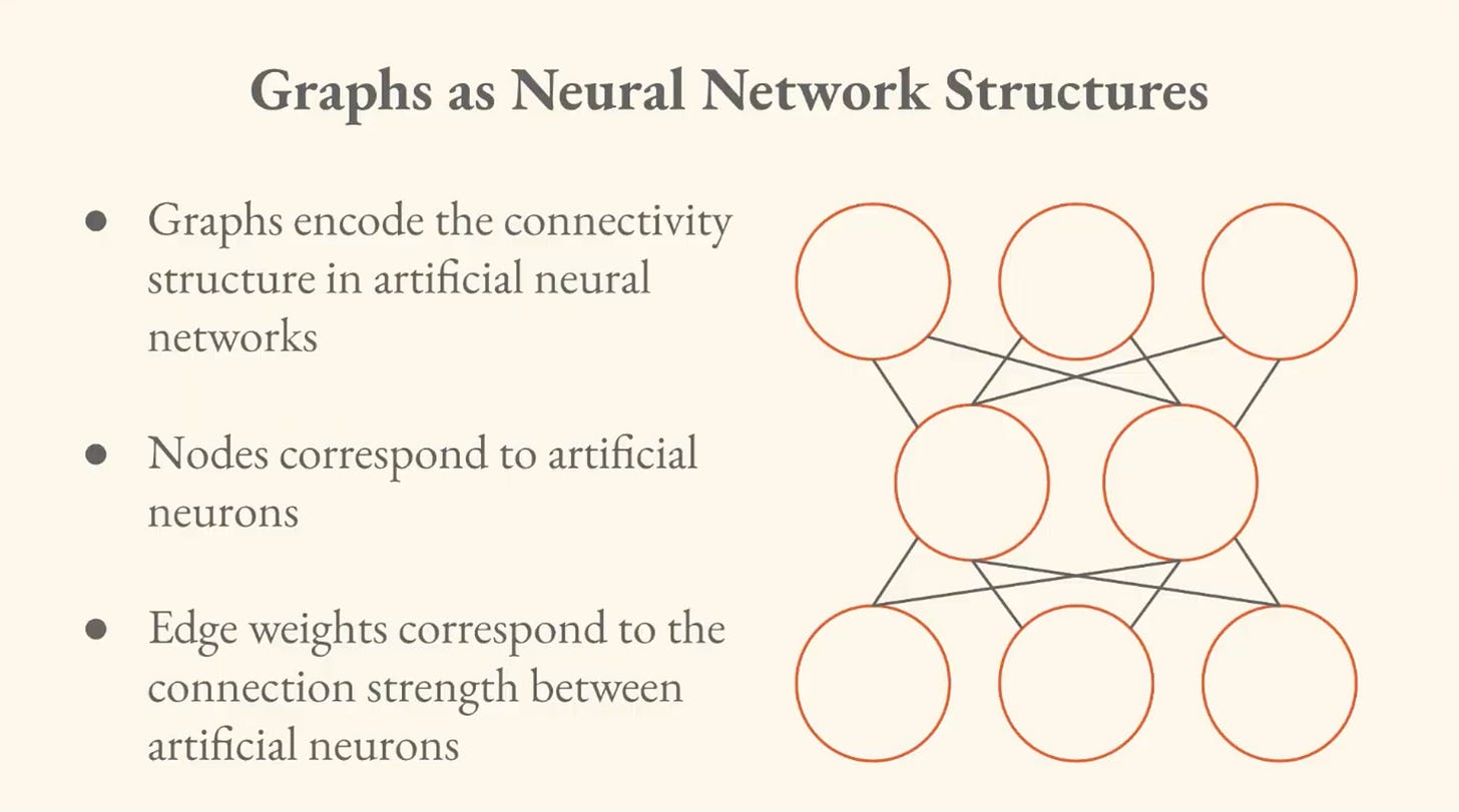 The most fundamental abstraction is a Graph, defined as a set of vertices and a set of edges. There are nodes which represent some entity we are trying to model, and edges that connect those nodes.